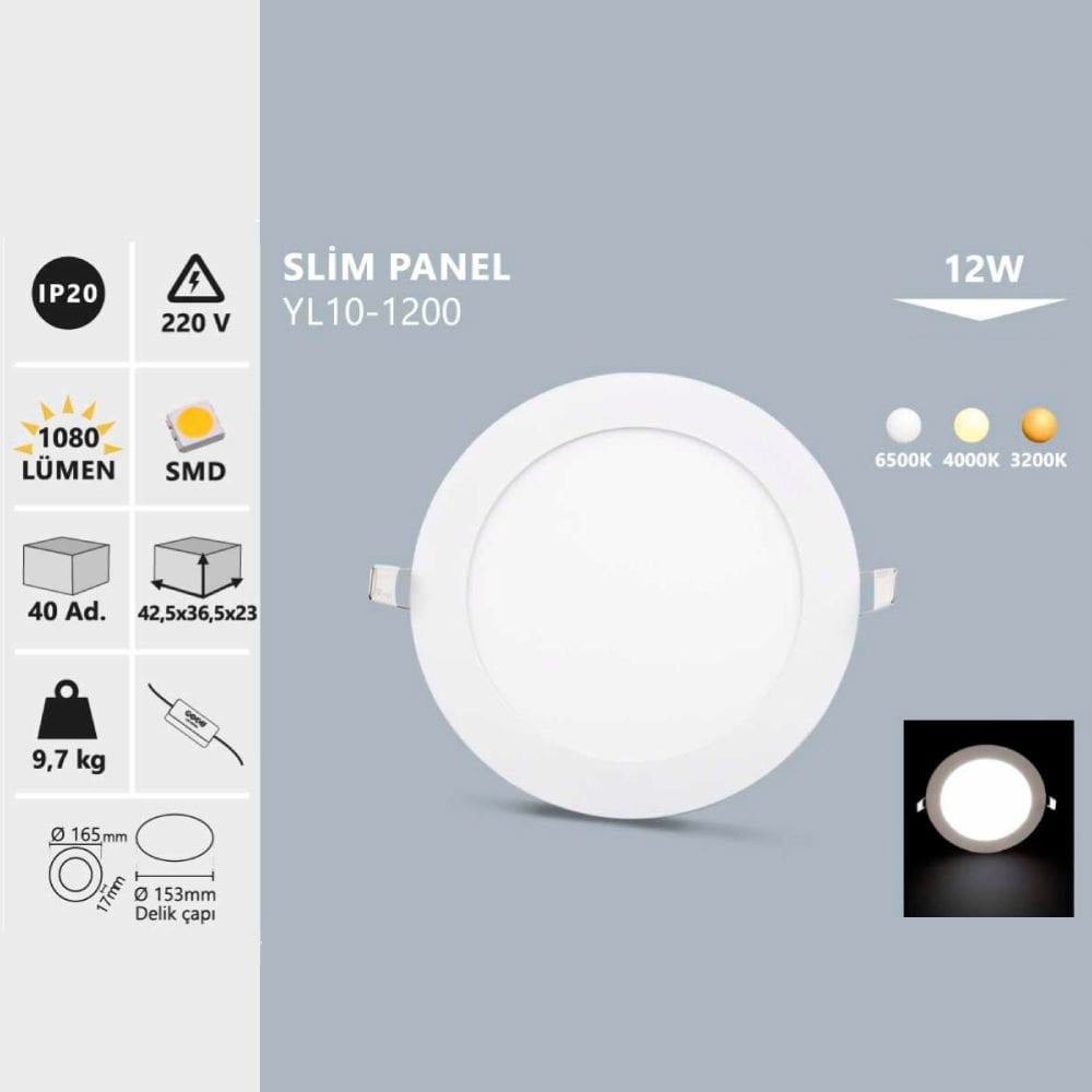 - 12W güç tüketimi ile enerji verimli aydınlatma sağlar.